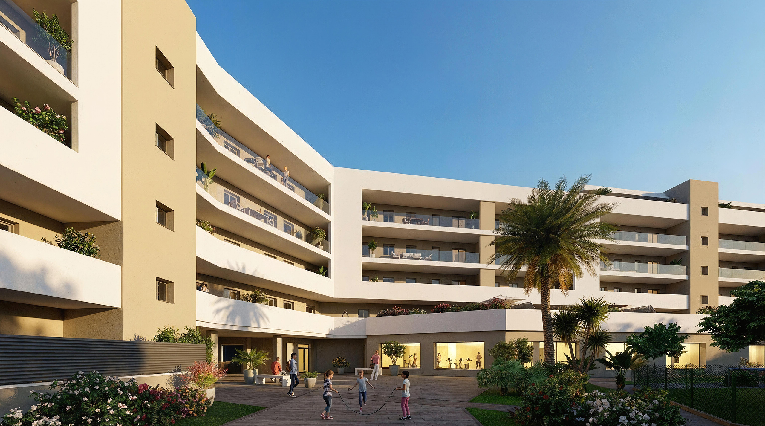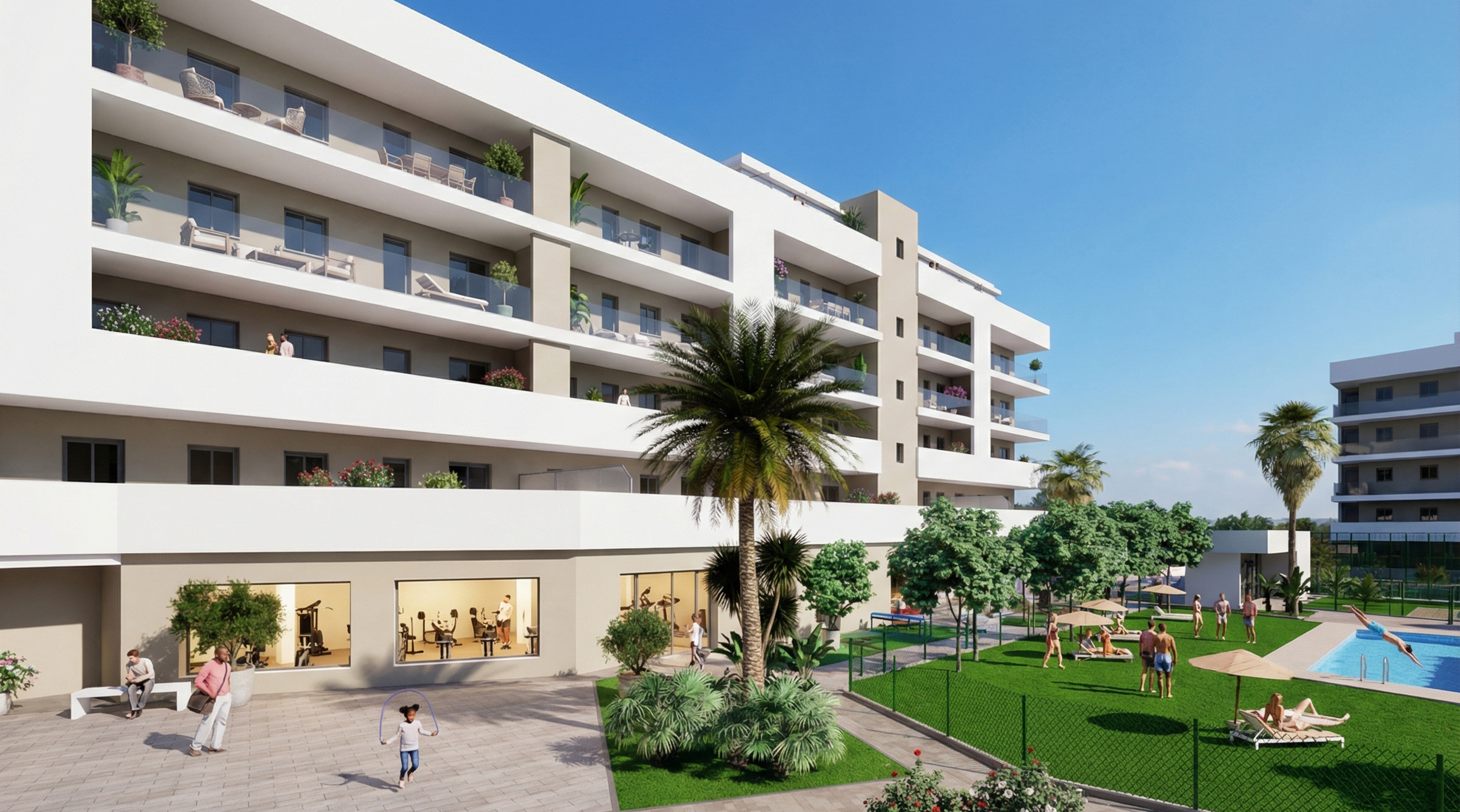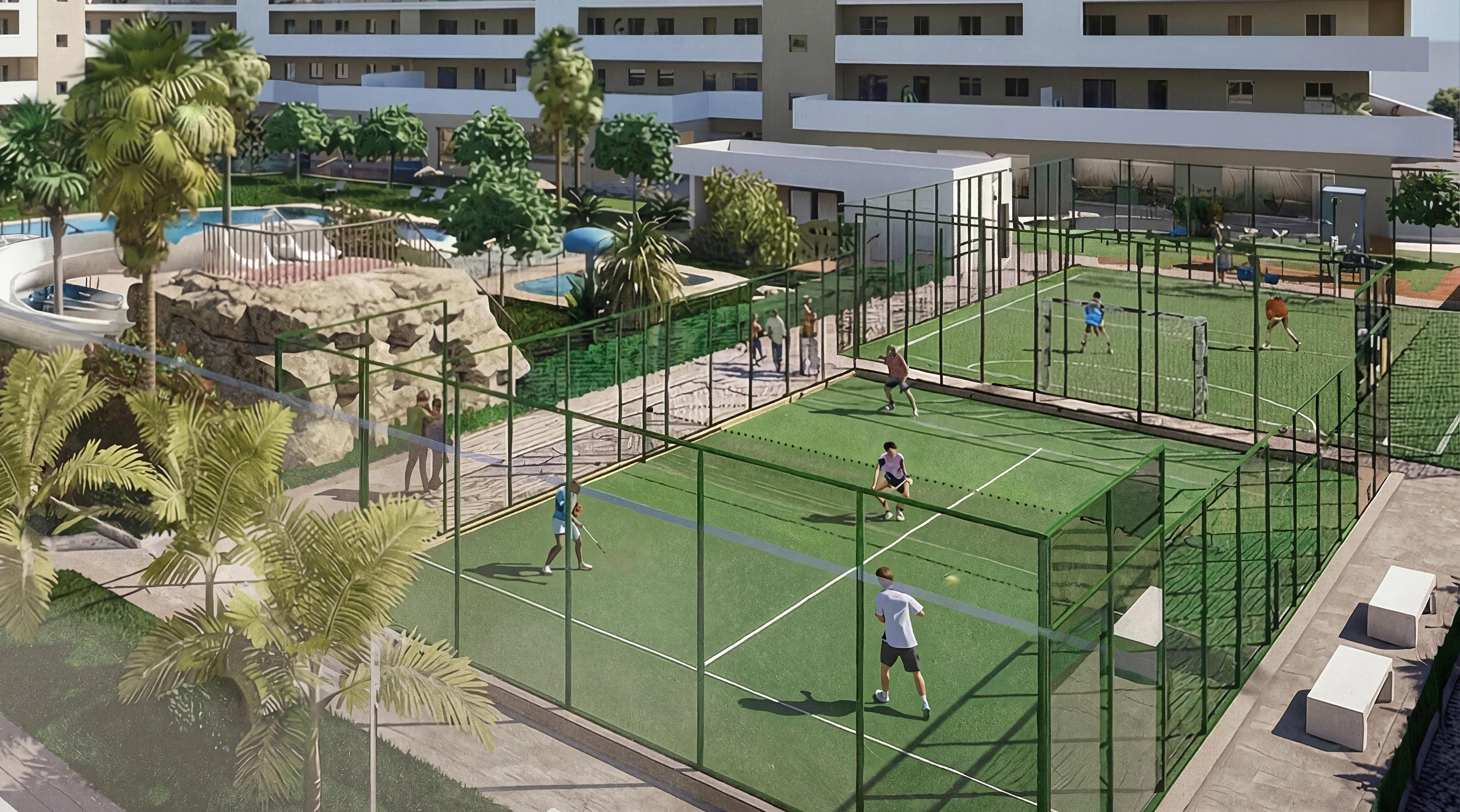 Nos proponemos dar valor a un nuevo concepto que hemos denominado “ VIVIR DE VACACIONES “, donde poner en práctica una nueva forma de vida con menos estrés y más enfocada al ocio, deporte y diversión, debido a que todas las viviendas podrán disfrutar en el mismo residencial, de 7.500 m2 de zonas comunes;