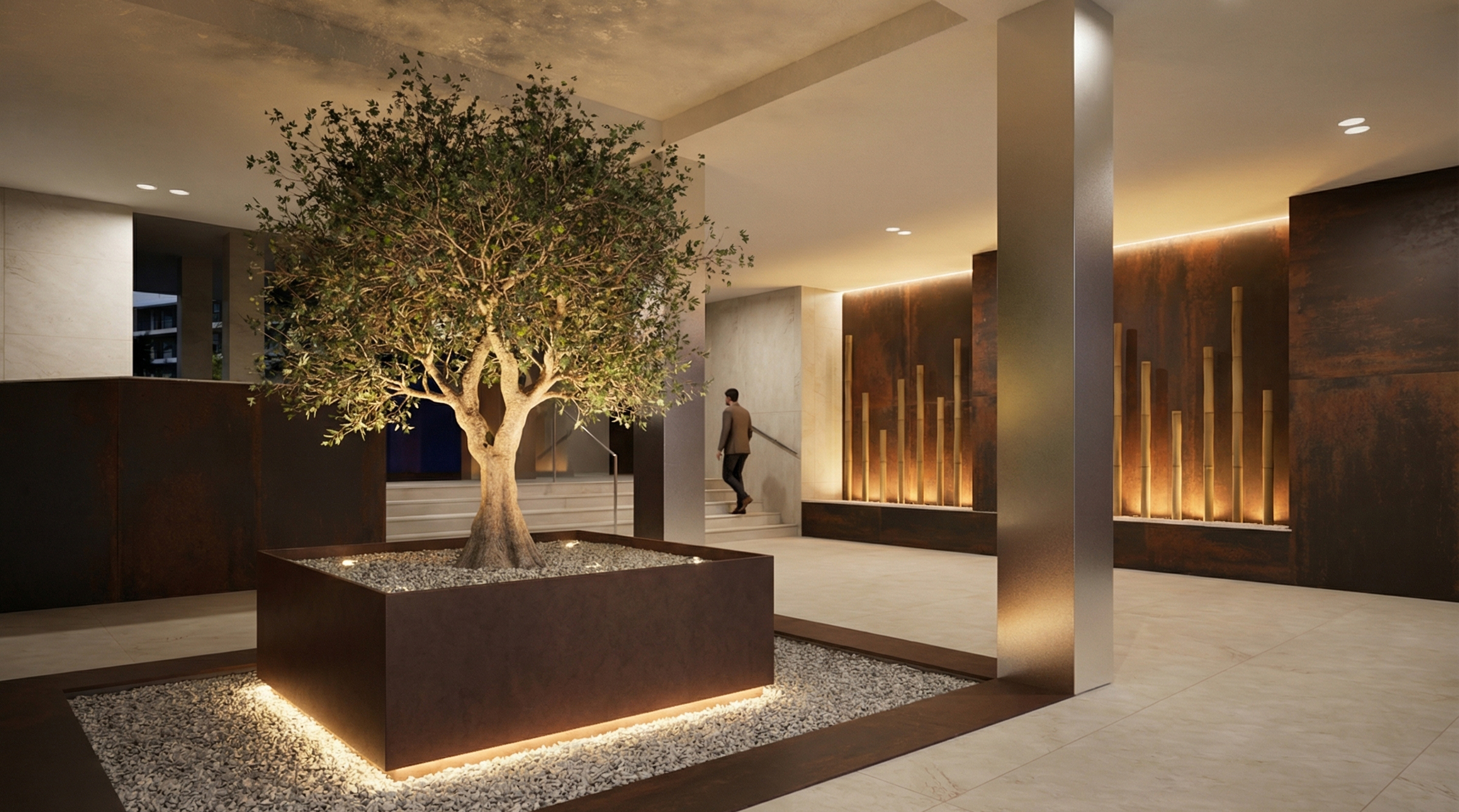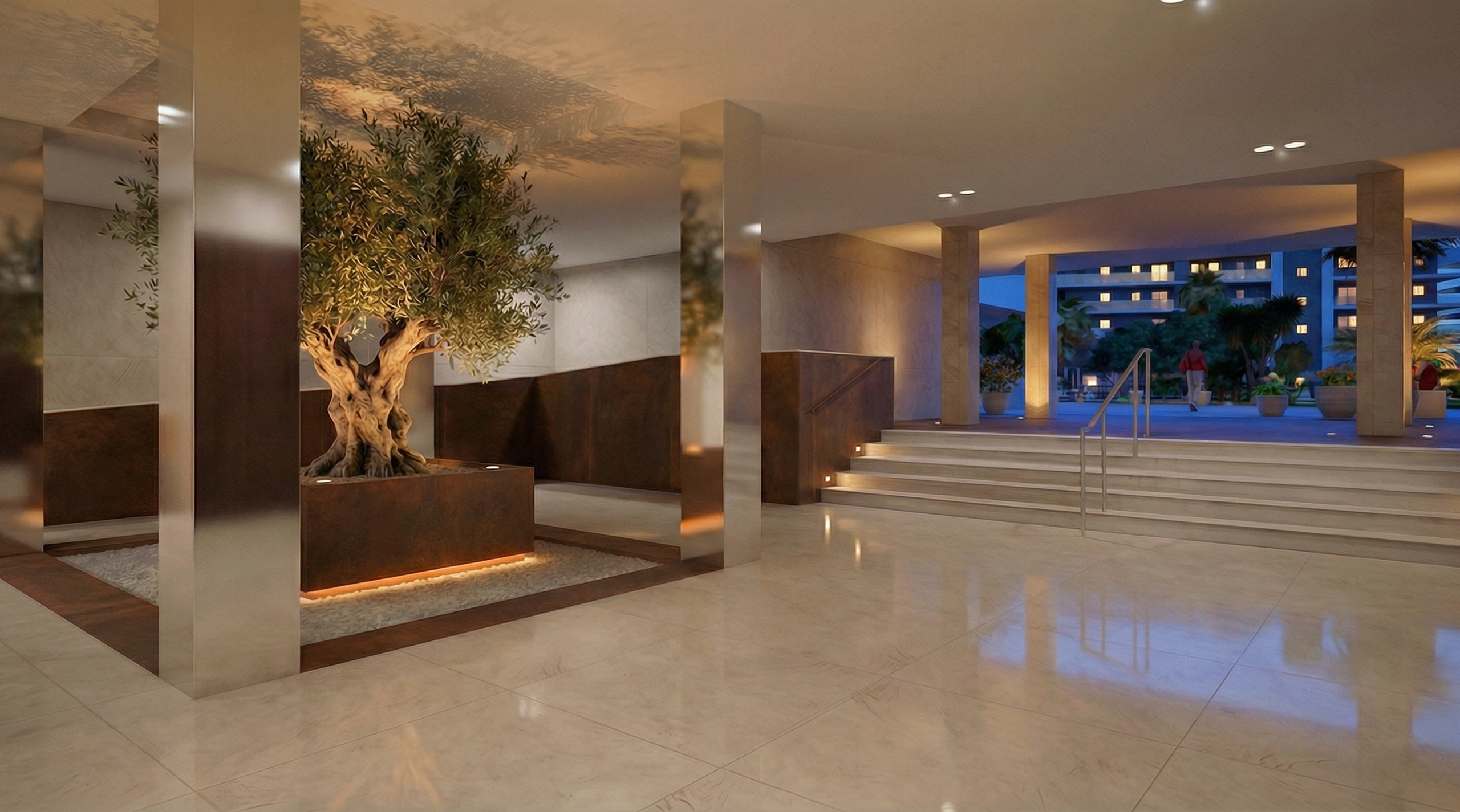 - Amplias zonas ajardinadas con vegetación y bancos.